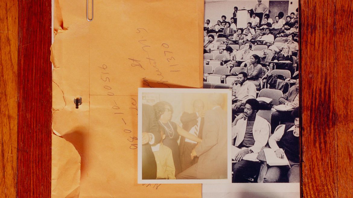 Off the Record brings together the work of thirteen contemporary artists from the Guggenheim’s collection who interrogate, revise, and query dominant narratives and the transmission of culture through “official” records. Across various manipulations of records, including state documents, newspapers, and photographs, artists in this exhibition seek to call out the power dynamics obscured by official documentation, complicate the ideas of objectivity and neutrality, and surface new narrative possibilities. Off the Record features works by Sadie Barnette, Sarah Charlesworth, Sara Cwynar, Leslie Hewitt, Tomashi Jackson, Glenn Ligon, Carlos Motta, Lisa Oppenheim, Adrian Piper, Lorna Simpson, Sable E. Smith, Hank Willis Thomas, and Carrie Mae Weems. Off the Record is organized by Ashley James, Associate Curator, Contemporary Art.
